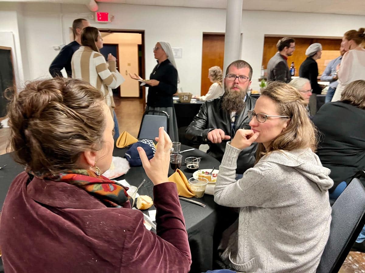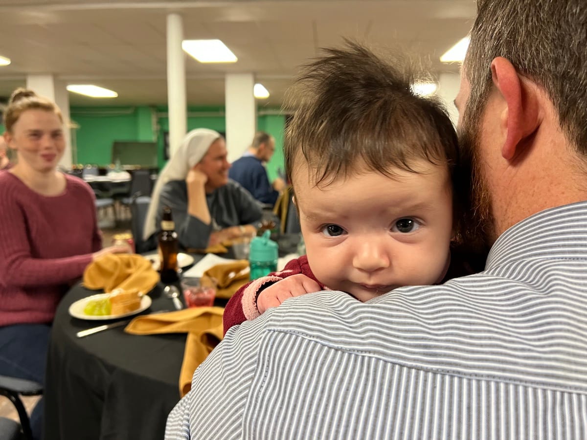 About 40 of the 90 active members of the 240 Club joined us for dinner in the lower level of the Sycamore Center in downtown Steubenville on Saturday, December 3, 2022. Families, friends, students, and religious were among the members, and all had a blast.