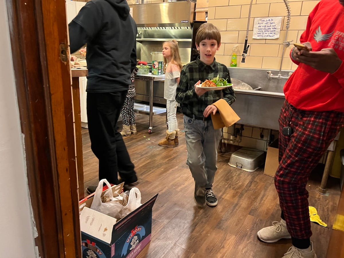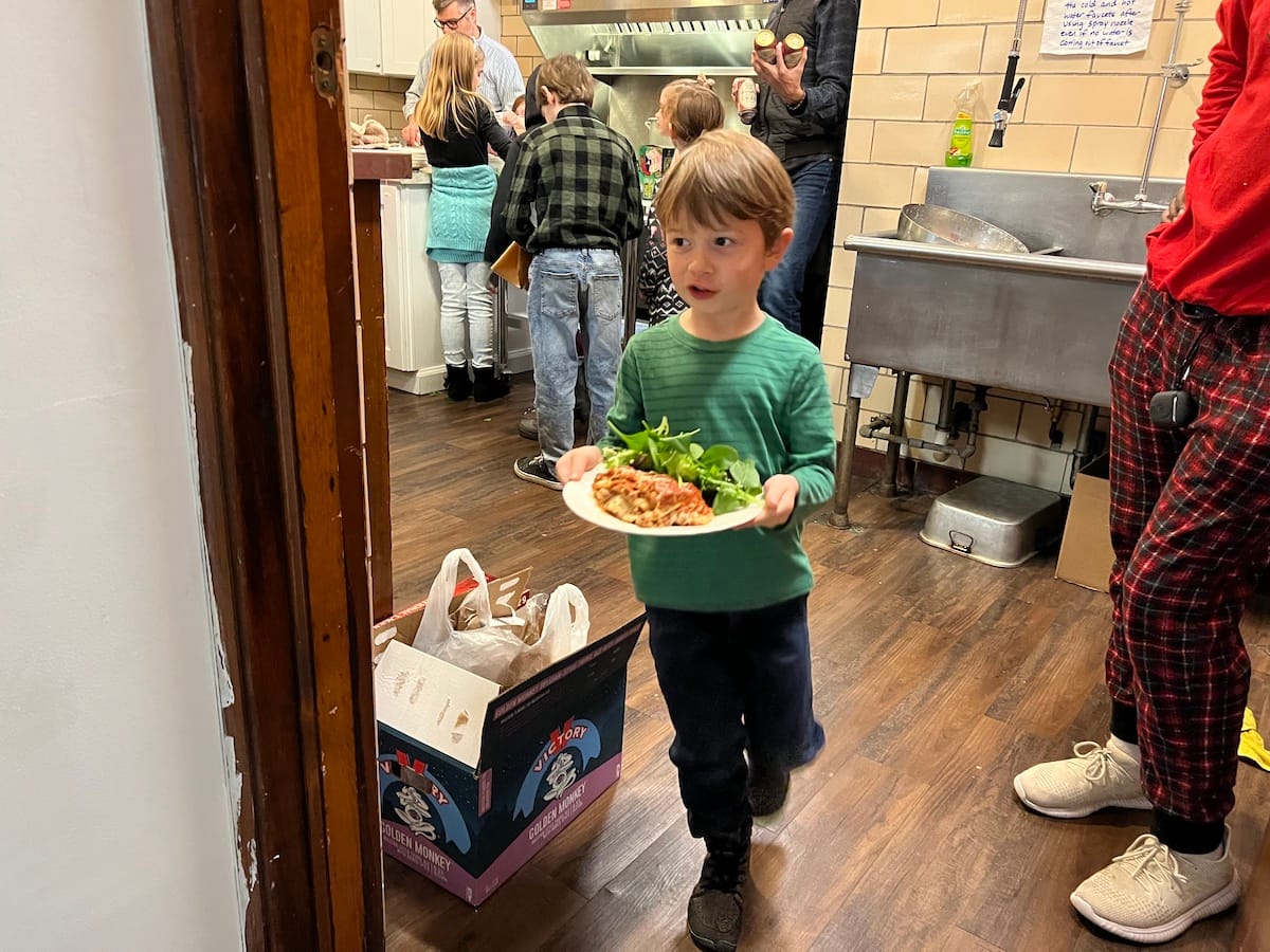 Elementary students also aided in setup, they served dinner with panache, AND they helped to bus tables.