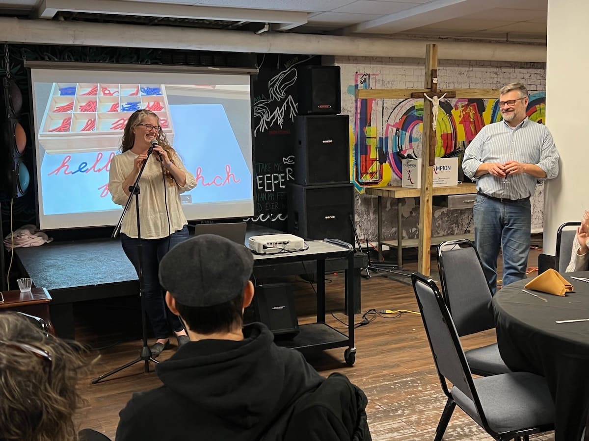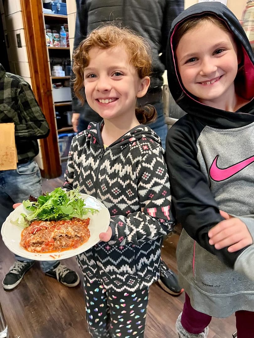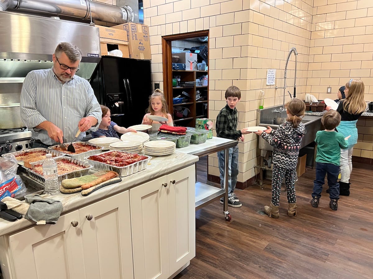 Bobbyjon and Pam Bauman made the wonderful space in the Sycamore Center available for us. Beverages were provided in part by Zelensky’s Restaurant, and in part by Board member Paul Crowe and his wife Robbie. The meat for the lasagna was generously provided by Board member Heidi Ryan and her husband Bill. Centerpieces for the tables were designed by Katie Takats. Home-and-School Association president Holly Coakley aided in setup and coordination. Josh and Brooke Miller and their Inscape Missionaries provided invaluable assistance during the event.