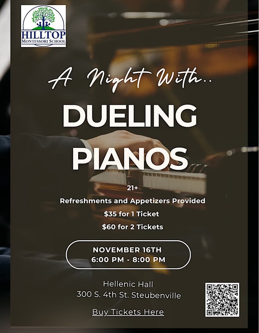 Our parents are hosting an evening of dueling pianos to support tuition reduction. It will be a great night of music, jokes, song requests, and fun! This Saturday, November 16 from 6-8 pm at the New Hellenic Hall in the lower level of the Greek Orthodox Church at 300 S. Fourth Street, Steubenville. Heavy hors…
