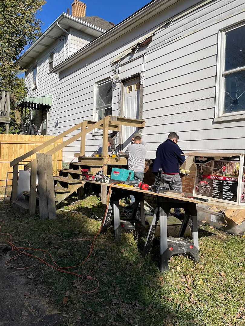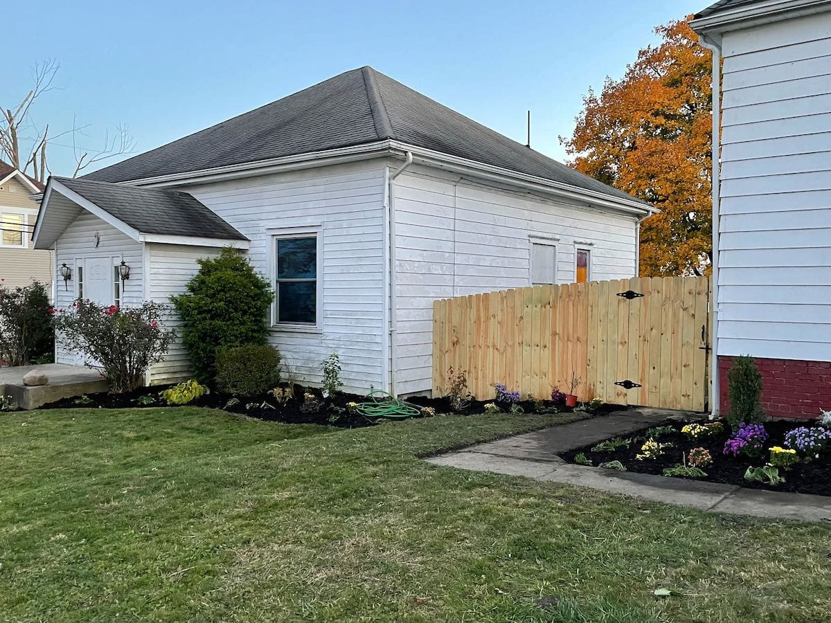 Shrubs and flowers planted, towel rods and shelves installed, flooring put down, pulls put on cabinet doors and drawers, some exterior work done to shore up the insulation, and quite a bit of cleaning.